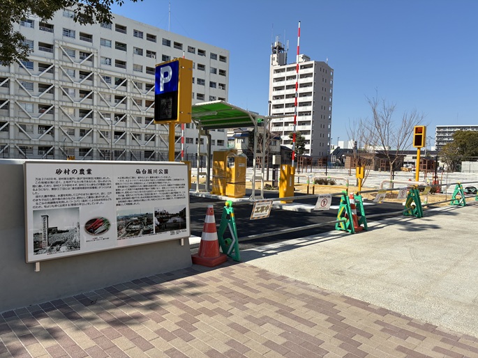 区民農園の竣工を織り込んだ真新しい案内板が準備されています。