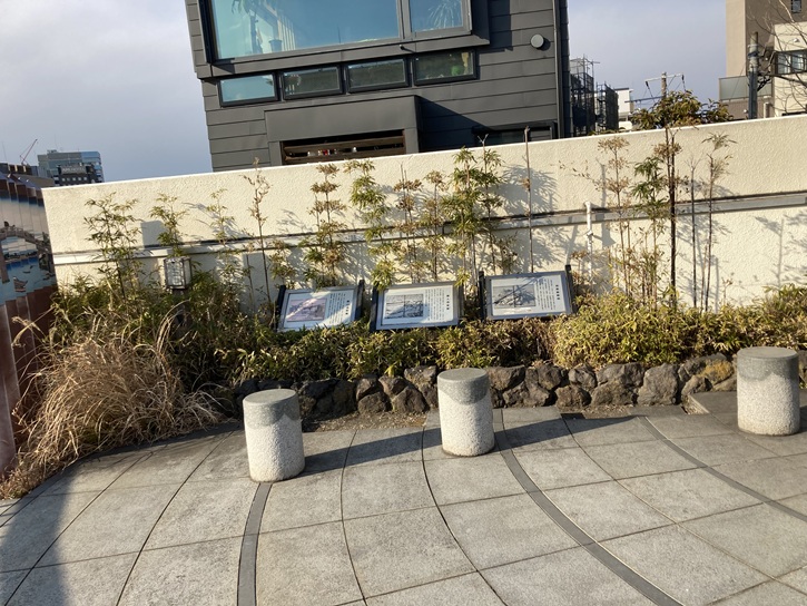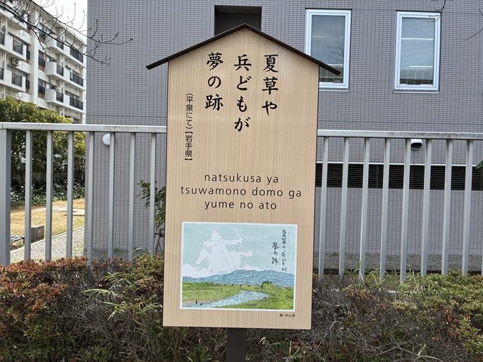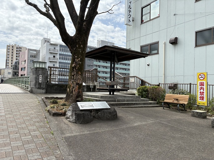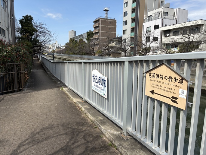 仙台堀川沿いの遊歩道には、芭蕉の句板が並んでいます。