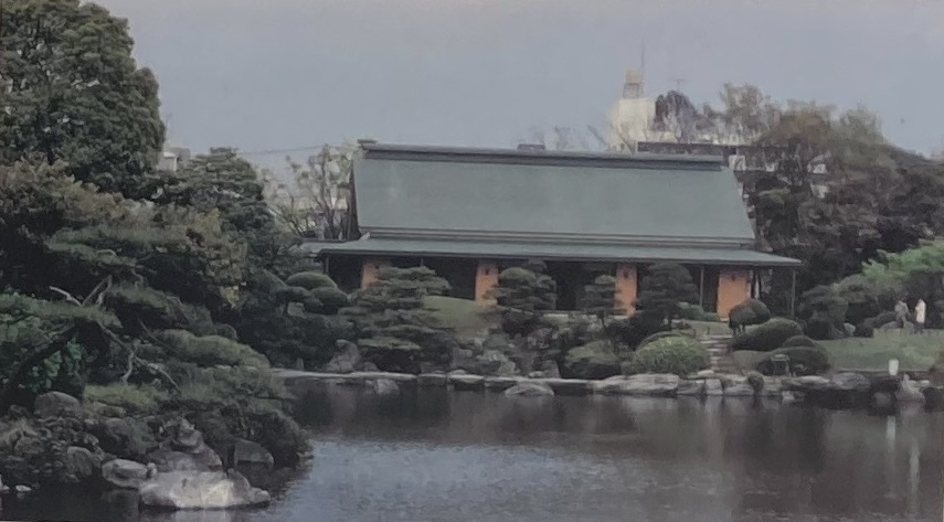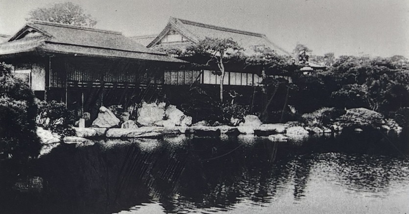 河田小三郎により設計監理された日本館は建坪315坪(約1040u)で、大広間、茶室、小集会場、松の茶屋などを備えた壮大な木造家屋でした。明治十九年(1886年)着工、明治二十二年(1889年)に竣工しました。しかし、大正十二年(1923年)関東大震災の際に焼失しました。