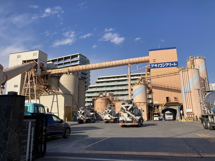当地は日本で初めてのセメント工場があった場所です。明治八年、工部省が本格的なセメントの製造に成功しました。上図手前の隅田川、右側の仙台堀などの泥土を原料の一部として使い、試行錯誤の末、外国品と遜色のない国産のセメントを作り上げました。明治十六年、当社創業者のひとりである浅野総一郎が払い下げを受け、その後民間のセメント工場として発展を遂げました。