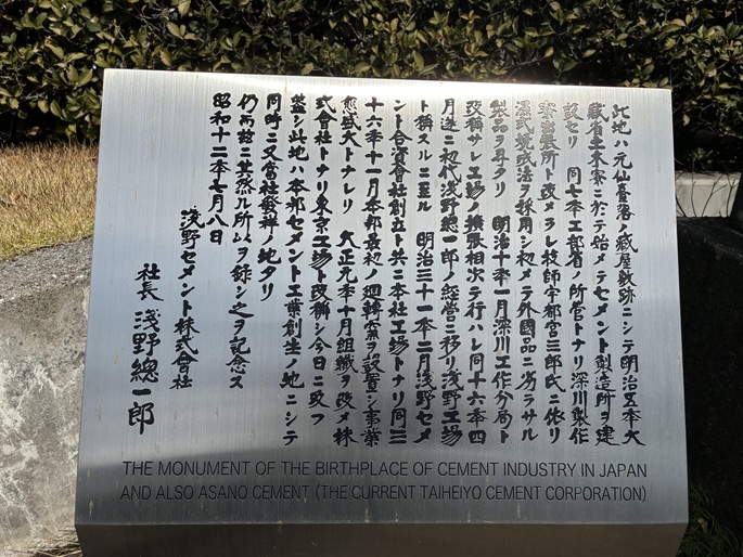 THE MONUMENT OF THE BIRTHPLACE OF CEMENT INDUSTRY IN JAPAN AND ALSO ASANO CEMENT (THE CURRENT TAIHEIYO CEMENT CORPORATION).