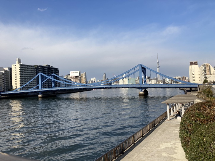 隅田川テラスに下りますと、目の前に優雅な清洲橋が眺められます。