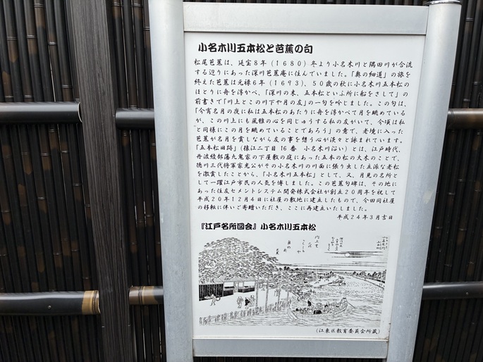 「小名木川五本松と芭蕉の句」の解説パネルです。