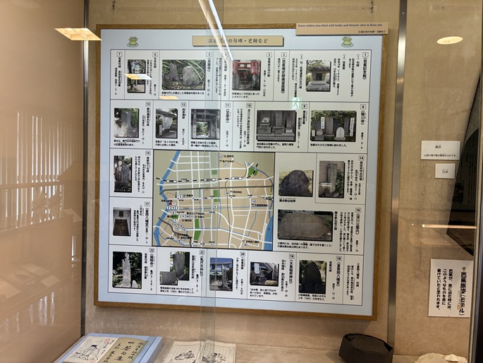 記念館は、3階が常設展示室で2階は企画展示室になっています。常設展示室では、パネルなどを使って松尾芭蕉について分かりやすく解説しています。江東区内の芭蕉縁の史跡や旅姿を復元した袈裟なども展示されています。