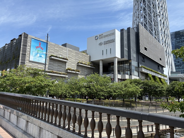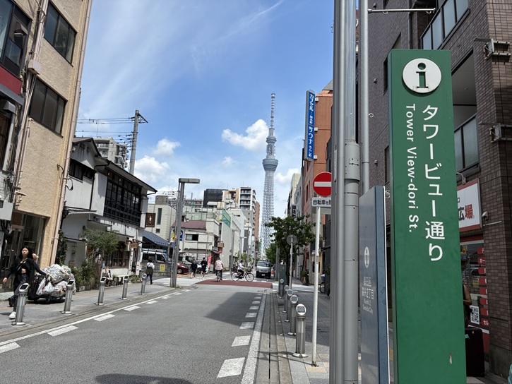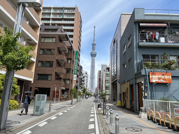 歩道には電柱がなく、電線類が全て地中に収められていますので、通りのどこからでもスッキリした視界でスカイツリーが眺められます。