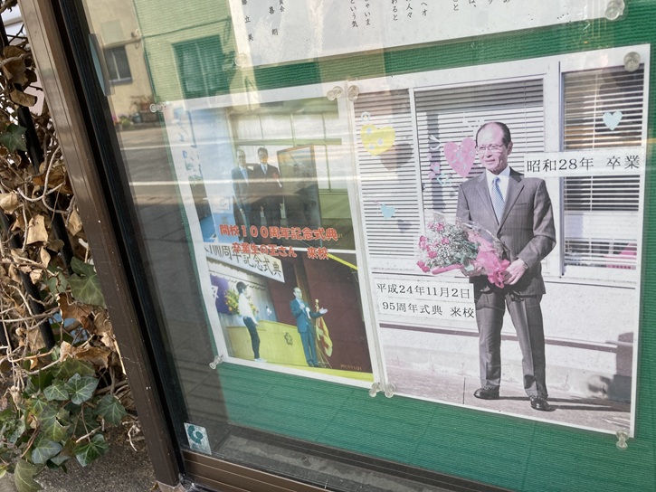 玄関先には、業平小学校開校100周年を記念して制作された王選手の手形と共に、式典に参加した王選手の写真も掲示されています。