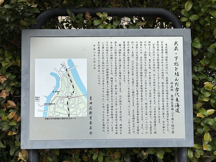 現在の墨堤通りは、かっての古代東海道の「下の道」でした。