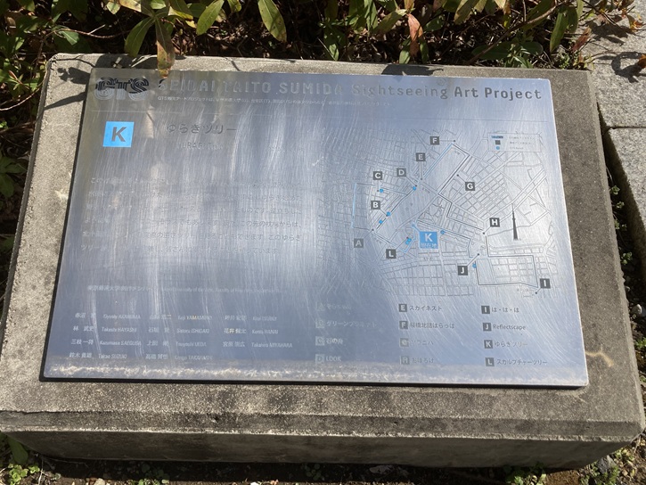 墨堤通りの手前に奇妙なオブジェが建っています。吾妻橋の袂にあったアート作品と同じ趣旨で設置されたみたいです。