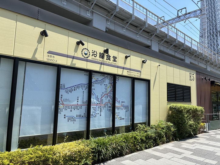 コネクトすみだ[まち処]は、墨田区の「ものづくりの名産品」がどこよりも揃っているお店です。ロゴマークの江戸紋様である毘沙門亀甲は、財宝や福徳をもたらしてくれる七福神の一神である毘沙門天さまの甲冑にこの文様が使われていて、特に縁起良い吉祥文様となっています。また、中の図柄を「人」にすることで、「人と人がつながる」というイメージを表しています。沿線食堂は、2022年6月18日に東京ミズマチにオープンし、「食べて守ろう!沿線にある食堂の味」をスローガンにして、大切な食堂の味を多くの人たちに届け、食を通じた沿線の食堂のサポートを行っています。