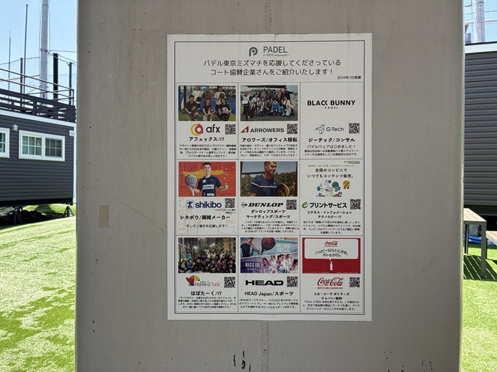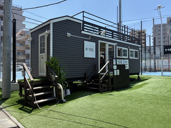 小梅橋の先にプレハブの建屋とフェンスに囲まれた広場があります。パデル東京ミズマチは、スペイン発祥の人気ラケットスポーツ「パデル」が楽しめる専用施設です。パデルはテニスとスカッシュをあわせたようなスポーツで、世界で2、500万人の競技人口を持ち、欧州や南米ではテニスの人口を上回る国も多く、老若男女がプレーできる国民的なスポーツです。あまり馴染みのないスポーツですが、多くの企業が協賛しているとのことです。