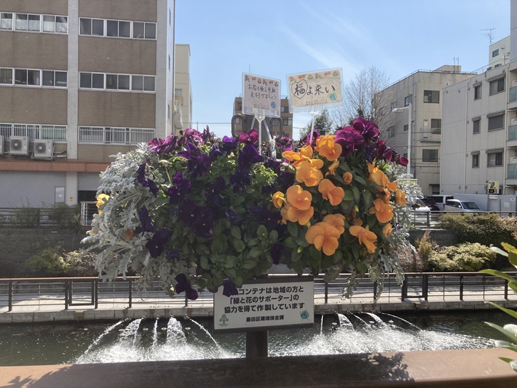 ボランティアの方が作ったお花のバスケットがきれい!