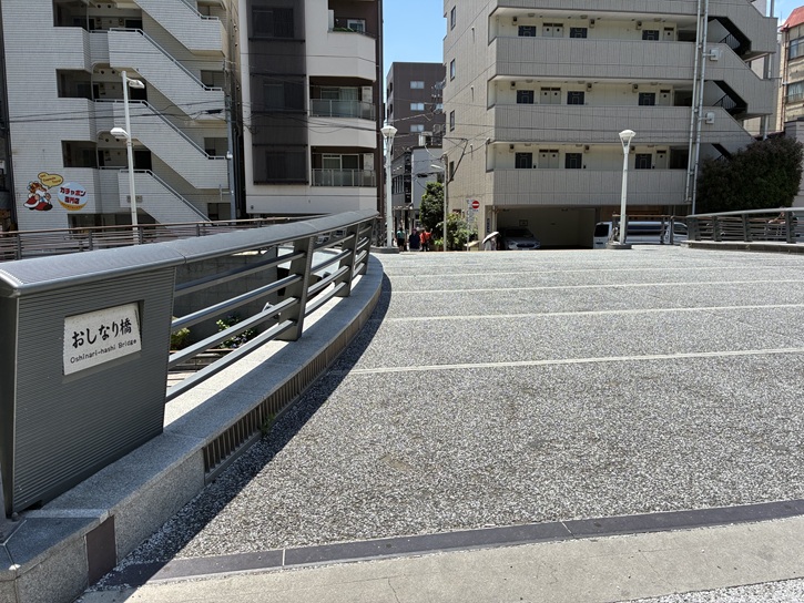 公園の中程には、対岸をつなぐ「おしなり橋」という歩行者専用の橋が架かっています。