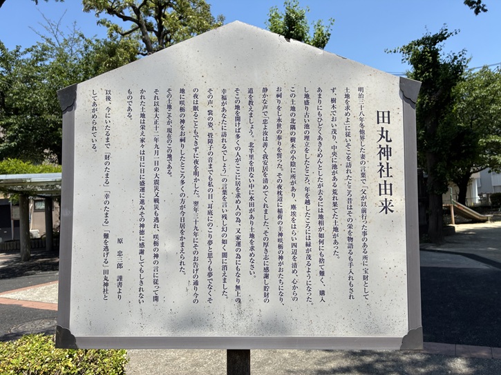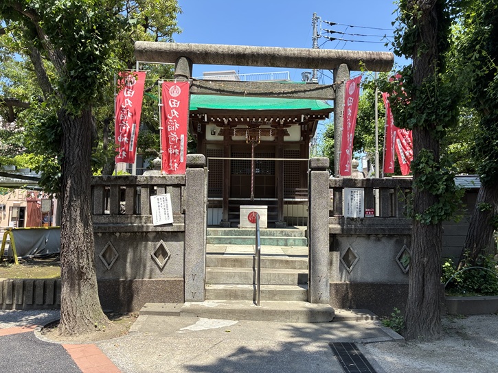 キラキラ橘商店街の外れの曳舟たから通りに面して田丸神社があります。