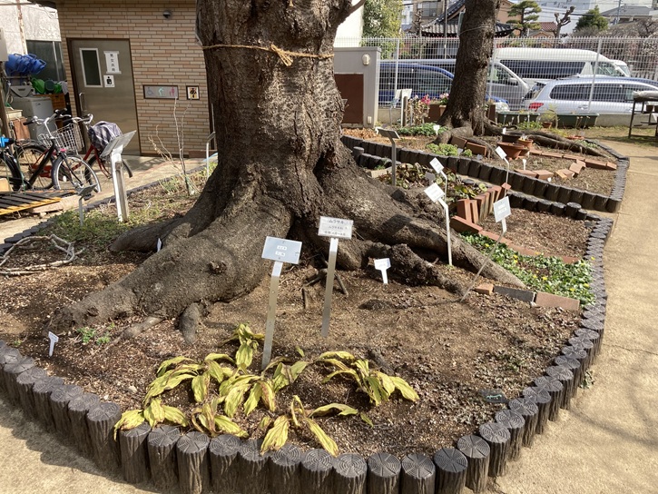 入口を入って左手は桜と花壇のコーナーになっています。