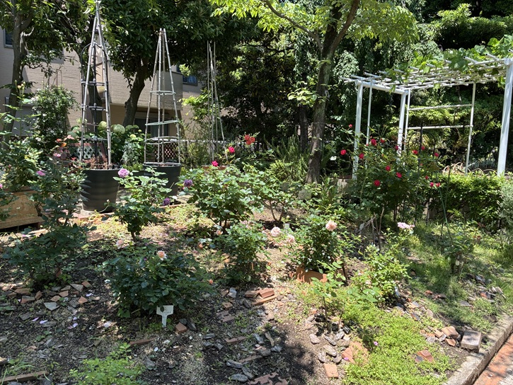 棚を潜った園内の左手奥には季節の花木が区分けして植えてあります。