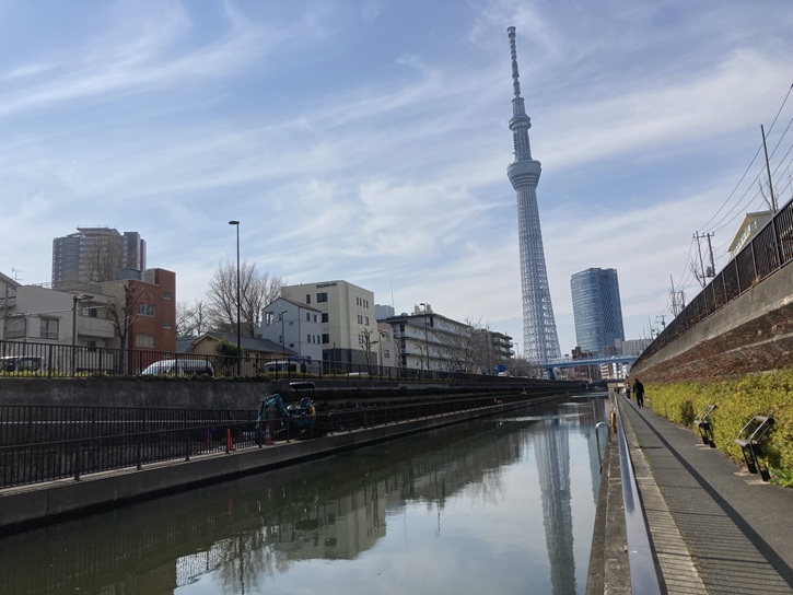 十間橋と並んで、西十間橋もスカイツリーのビューポイントです。逆さスカイツリーも見られます。