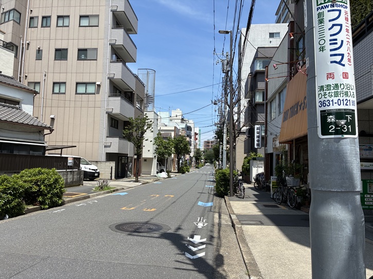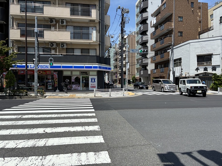 清澄通りに出てコンビニの角で左折し、鍵型に進んで水道局の角を左折します。