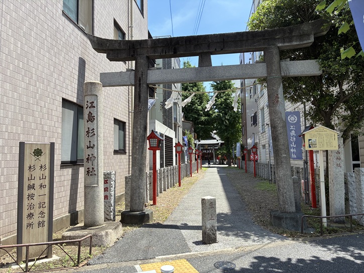 江ノ島弁財天と、日本鍼灸を確立した杉山検校を祀っています。境内には江ノ島の岩屋を模した岩屋があります。