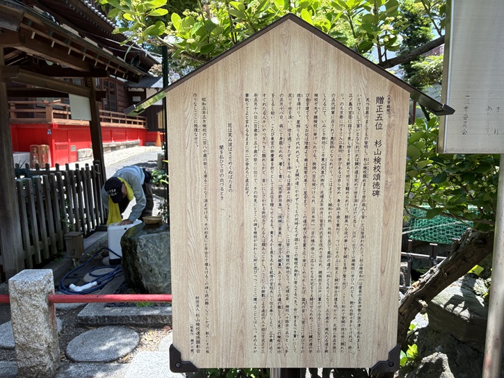 境内の池の手前に、杉山検校頌徳碑が建っています。