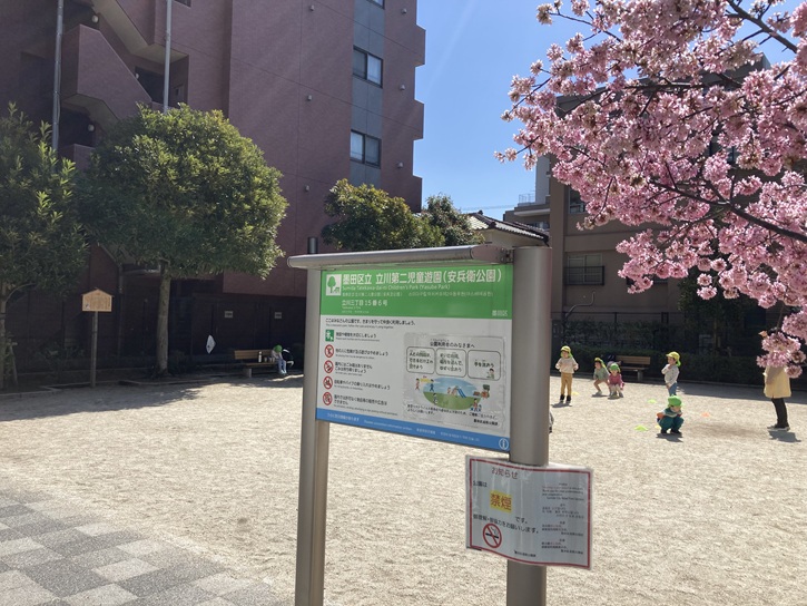 五間堀公園は森下駅の北側出口から直ぐの場所にあり、遊具も設置されていて、ちょっとした下町の憩いの場になっています。