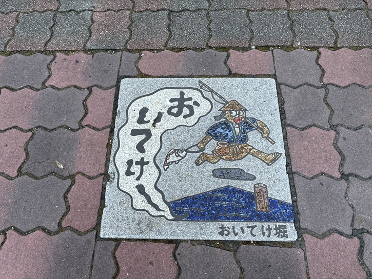 歩道のタイルにも、おいてけ堀のイラストが描かれています。