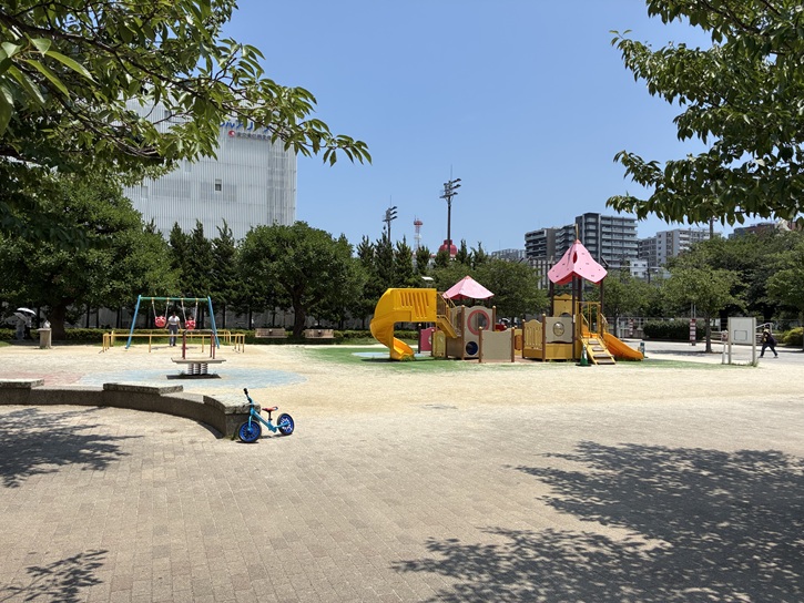 公園内には芝生や遊具、噴水があるほか、野球場や体育館も併設され、子どもから大人まで楽しむことができます。
