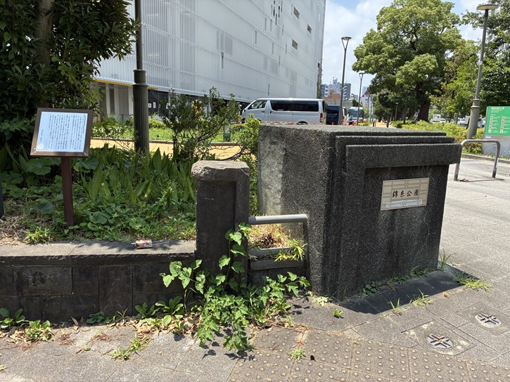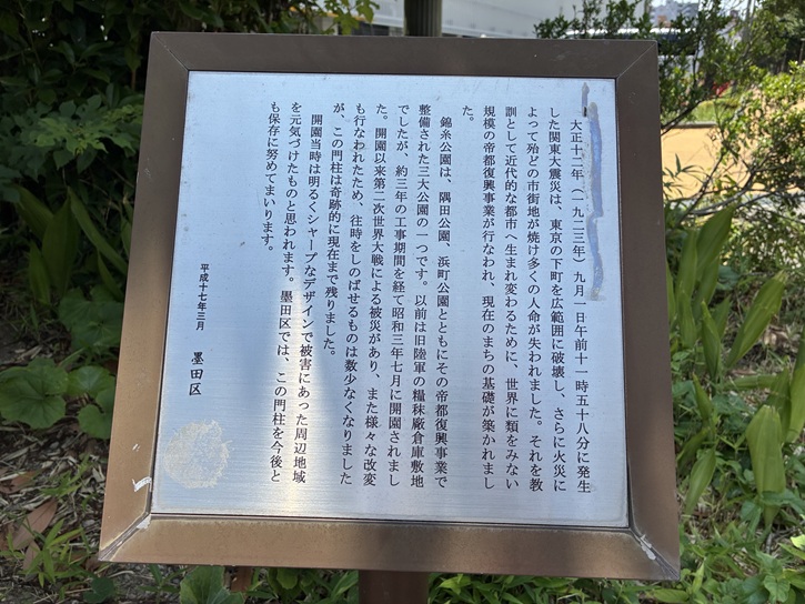錦糸公園の北東角には、震災や戦災にも耐えた門柱が残されています。
