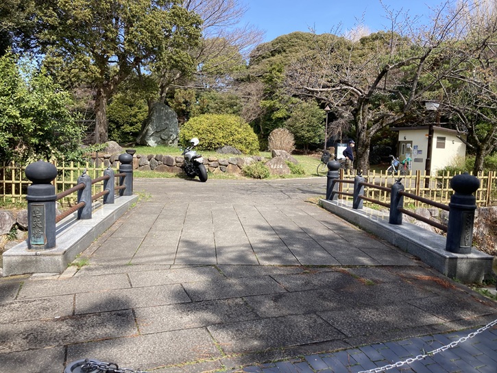 細い水路に架かる皀莢橋(さいかちばし)を渡った先に石庭広場があります。