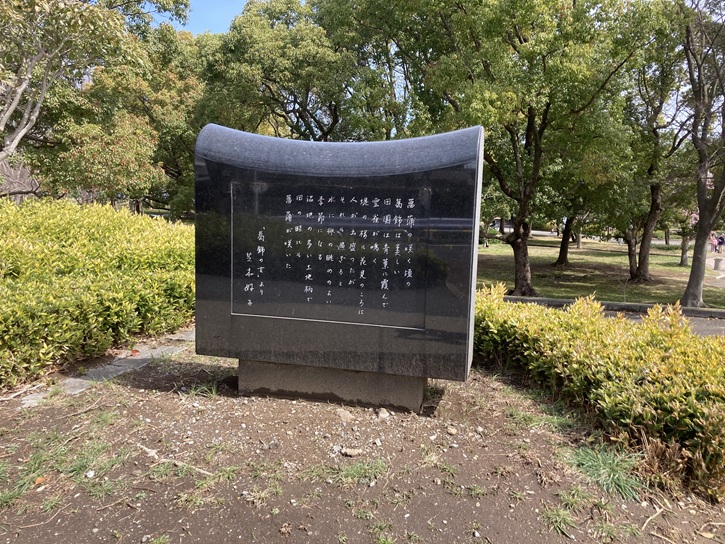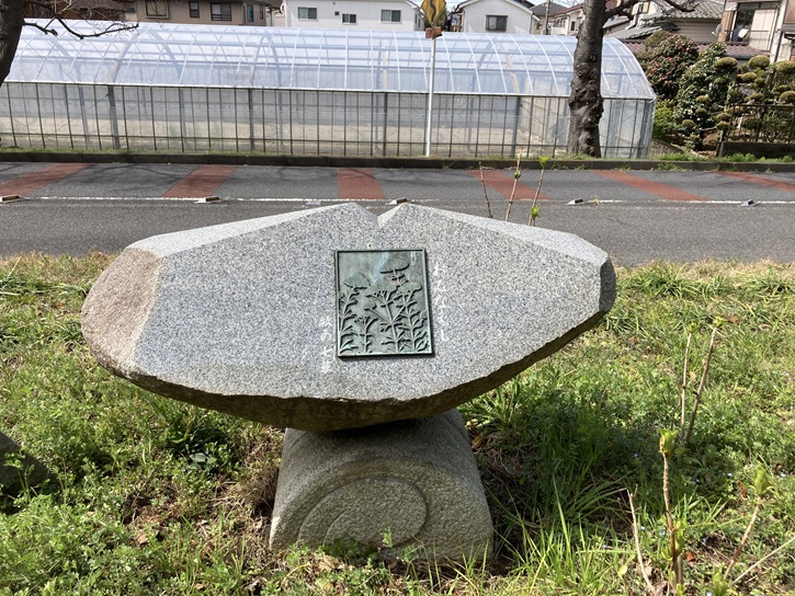 植生保存地の中には、秋の七草をレリーフにした石碑が置かれています。「秋の七草」は、奈良時代の歌人、山上憶良(660年〜733年)が詠んだ次の二首の歌が元になっています(後に編纂された万葉集にも採録されました)。