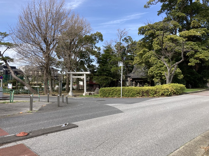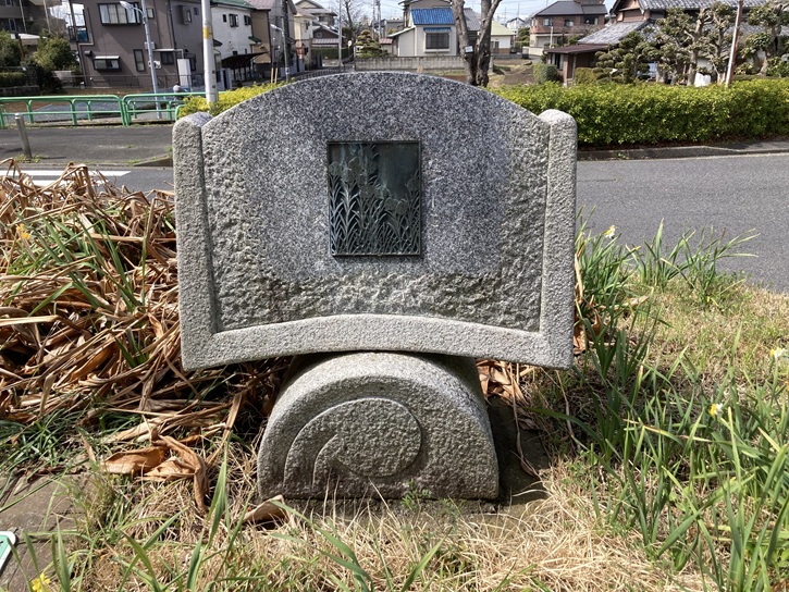 水元五丁目三叉路から水元神社に向かいます。道路脇に小さな鳥居があり、その奥に2基の石碑が建っています。一方は「水神宮」と読めるのですが、もう一方は文字が剥落して読めません。台座の形状から、昔の井戸跡ではないかと思われます。