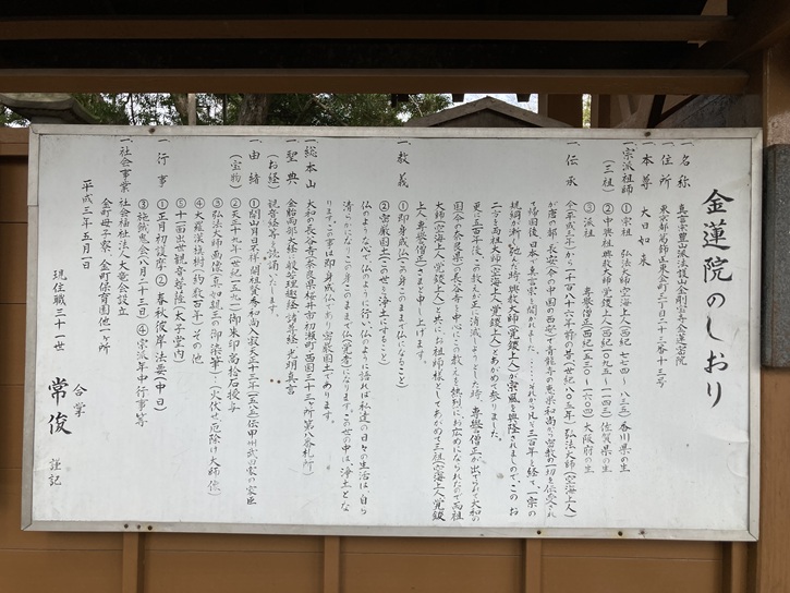 三門の壁に「金蓮院のしおり」と題して長大な案内板が掲げられています。