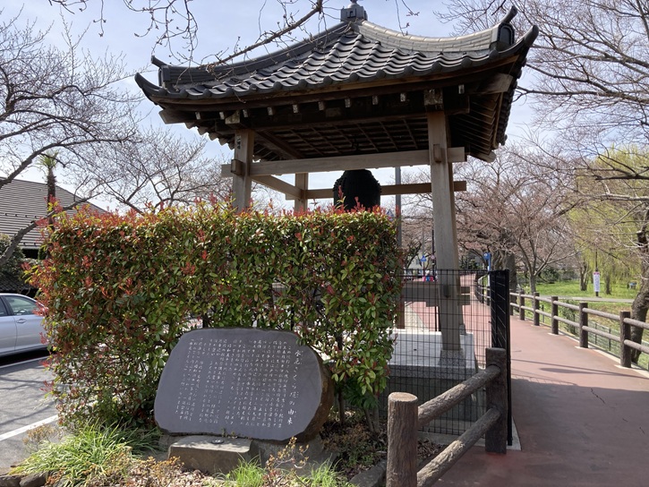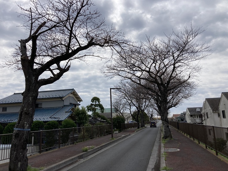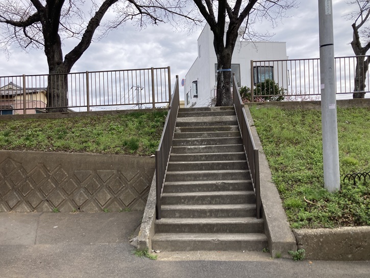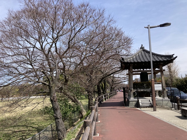 半田稲荷神社から水戸街道に出て、東金町交番東交差点から脇道に入り、石段を上がって桜堤に出ます。桜堤は水元桜堤から続く桜の名所です。