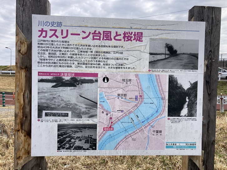 桜堤は戦後まもなく来週したカスリーン台風によって決壊し、東京の東部一帯に大きな被害を出しました。
