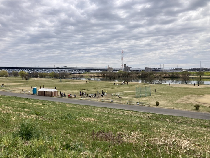 河川敷にはゴルフ場らしきものも設けられています。新種のスポーツかな?河川敷の道路は災害時などの際に緊急物資輸送用の道路として使われます。