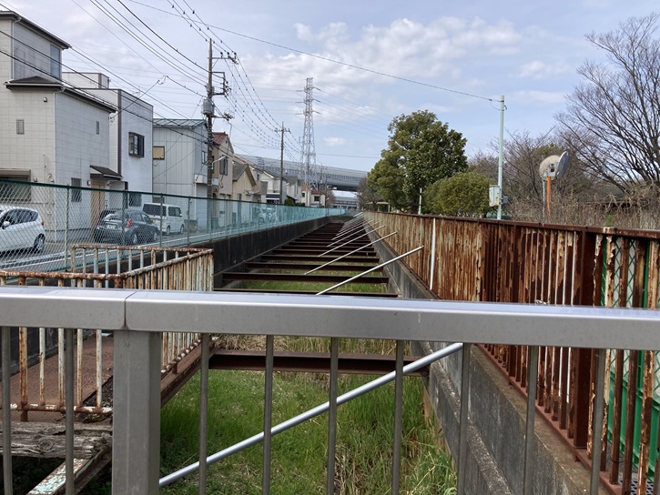 土手下に、都下水道局東金町ポンプ所があります。金町地域に降った雨水を江戸川に排出するための施設とのことです。小合溜から続いているような空き水路がありますが、これがポンプ所に繋がっているのでしょうか?