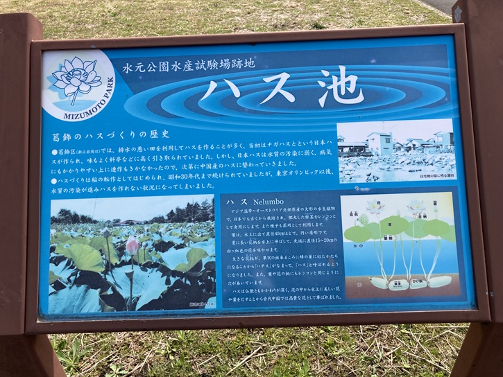 東京外郭環状道路の高架下を抜けて、水元公園の西側地区に入ります。この辺り一帯には、かって水元公園水産試験場がありました。その跡地を利用したハス池があります。
