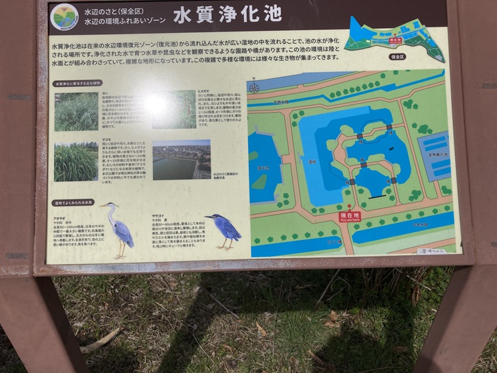 池の水は各池を循環しており、その水の浄化を主に担っている池です。水質浄化機能を高めるため、ヨシ等が生育する広い湿地を維持しています。