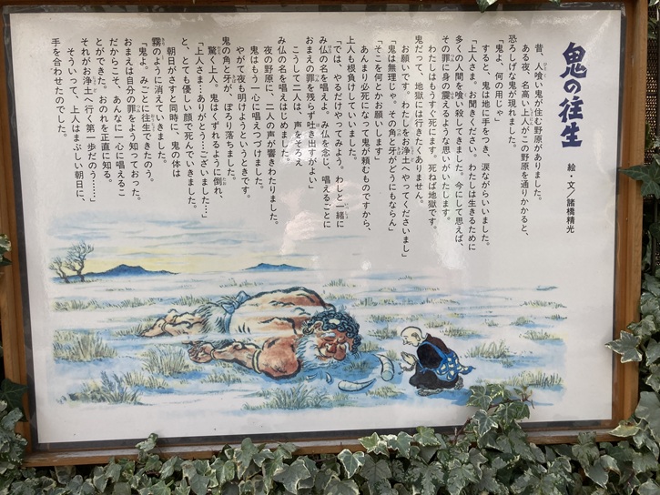 「鬼よ。みごとに往生できたのう。おまえは自分の罪をよう知っておった。だからこそ、あんなに一心に唱えることができた。おのれを正直に知る。それがお浄土へ行く第一歩だのう・・・」