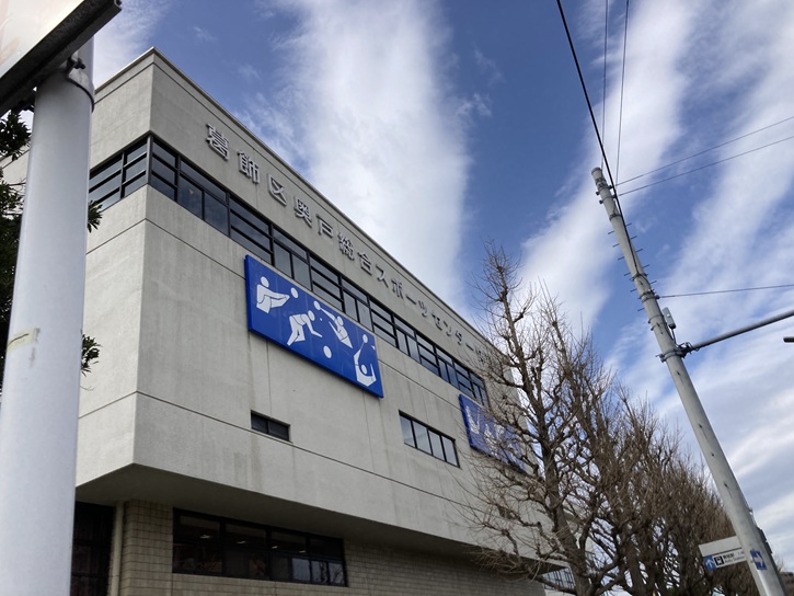奥戸スポーツセンター公園(旧名称:総合スポーツセンター運動公園)は、昭和六十年(1985年)に開園し、その後複数回の改修工事を経て現在の形になりました。体育館・陸上競技場・野球場・温水プール・エイトホール・テニスコート・少年野球場などのスポーツ施設で構成され、昭和五十九年(1984年)に体育館が、昭和六十年(1985年)に陸上競技場が、令和三年(2021年)にその他の施設が完成しました。敷地面積は48、503uで、東京ドームより少し大きいくらいの広さがあります。気持ちの良い川沿いに位置するということだけではなく、緑が多く四季を感じる場所もあります。園内には奥戸水神社もあります。