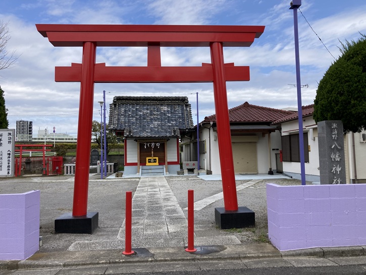 青砥橋を下りて、土手沿いの中川左岸緑道公園に入ります。土手下に諏訪野八幡神社があります。「万葉集」巻十四の東歌に「にほどりの葛飾早稲を贄すとも そのかなしきを外に立てめやも」とあり、この地は米どころとして葛飾の野に実った早稲の新米を神様に供して新嘗の祭事を営んでいたことが窺えます。また、青戸付近は良質粘土の原産地として早くも古墳時代より土器作りを主要とした人々の生活の地でもありました。このように祭事に深く関わり営まれた信仰の地は葛西御厨(伊勢神宮の神領地)として応年五年(1398年)の下総国葛西御厨注文(鏑矢伊勢宮方記)に見えています。その後、幾多の戦や行政の変遷などにも揺らぐことなく受け継がれ、三社明神(稲荷・白髭・諏訪)と称し、この里の鎮守神と崇られた様子が天正丙子年(1576年)頃から文献等に見え、その徳はこの里に人々が暮らし始めてから変わることなく加護しています。明治五年に社名を「白髭神社」と改称、昭和十八年に旧青戸4丁目にあった白山神社を合祀して「青砥神社」と改称、昭和三十五年に旧青戸町内にあった高木神社・八幡神社・北野神社・葛葉稲荷神社・水神社を合祀、昭和四十五年〜昭和五十五年にかけての環状七号線の整備により葛西城址にあった青砥藤綱神社を合祀しました。