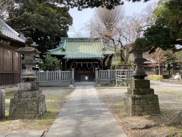 祭神として経津主命を斎る。当社は小合溜井の河畔にあり中世葛西御厨小鮎郷と称し伊勢、香取の神領地により当地宮司鈴木氏の遠祖は此の地にあって猿ヶ俣御厨在住の占部氏と共に香取神宮の貢税を掌どった所とも言える。後小田原北条氏の勢力範囲となり、その家臣遠山丹波守の所領となって自然御厨の地域の廃滅するに至った。以来幾許もなく徳川の所領となると同時小合村の鎮守となる。当社は当地鈴木家(現宮前町会)の内宮として香取神宮の御分霊を勧請し此地小合郷に奉斎したしたことが始まりと言う。宝永元年(1704年)八月古利根川猿ヶ又堤防決壊による水害で古い記録を失い創立の由緒年代については明らかでないが社蔵の板碑に正慶二年(1333年)文和四年(1355年)のものがあり、葛西御厨当時小鮎郷と称して下総香取神宮の神領地関係から推察し鎌倉期にさかのぼると思われる。