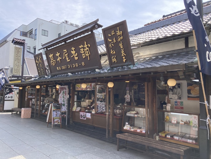 草だんごと和菓子の「高木屋老舗(たかぎやろうほ)」は、参道を挟んでテイクアウトやおみやげなどの販売店と喫茶店の2店舗があります。木造瓦ぶきの建物は、明治と大正時代に建てられた創業当時の風情のあるものです。古くから柴又帝釈天の参拝客に団子などを振る舞う店として知られていましたが、木屋老舗が有名になったのは国民的映画シリーズ「男はつらいよ」の主人公の車寅次郎の実家「とらや」(のちに「くるまや」)のモデルになったことです。