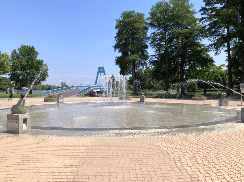 水元さくら堤を通って噴水広場の脇に出ます。