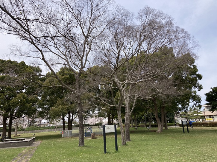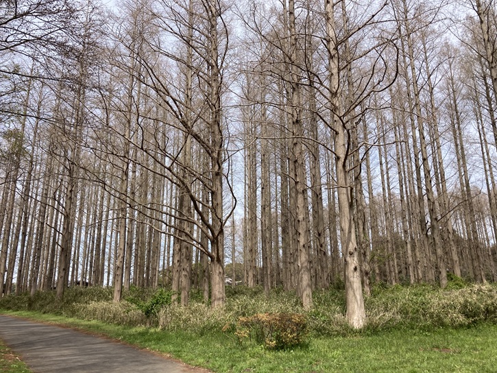 水元公園西側エントランスの手前の広場は、けやきの森になっています。というか、かなり剪定されて丸裸の状態ですが。