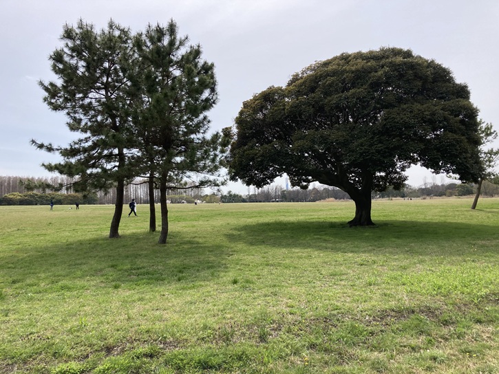 中央広場の面積は約10haで、全体がなだらかな草地の丘になっています。跳んだり、跳ねたり、思いっきり手を伸ばして寝転んだりできます。目に映るのは広い