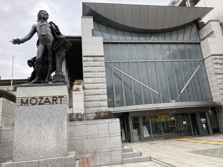 国内トップクラスの音響性能を誇るホール。正面入口のモーツアルト像は、ウィーン市にある像の完全複製。