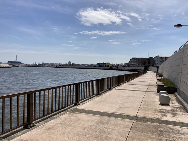 本奥戸橋から堤防下の遊歩道を進みます。川風が心地よいですね。