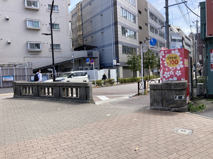平和橋通りと蔵前通りの交差点に、西井堀に架かっていた巽橋の親柱と欄干が遺されています。巽橋の名前の由来ですが、「巽」というのは東南の方角を指します。江戸深川の芸者衆を巽(辰巳)芸者と呼ぶのも「江戸の東南の芸者」からきています。新小岩の巽橋は何を中心にして「巽」なのかといいますと、明治二年(1869年)に成立した小菅県の県庁が置かれた小菅御殿(現在の小菅拘置所の敷地)から見た方角をいっているのだそうです。小菅県は明治四年に品川県とともに東京府に合併して短い間存在した県です。その小菅県を地域の中心として橋の名前に残っているのです。