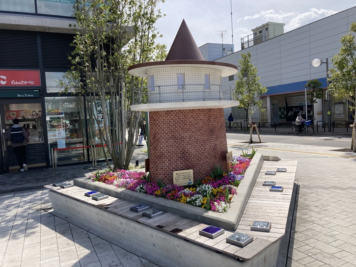 駅前広場の一画にとんがり帽子のモニュメントが置かれています。