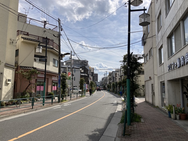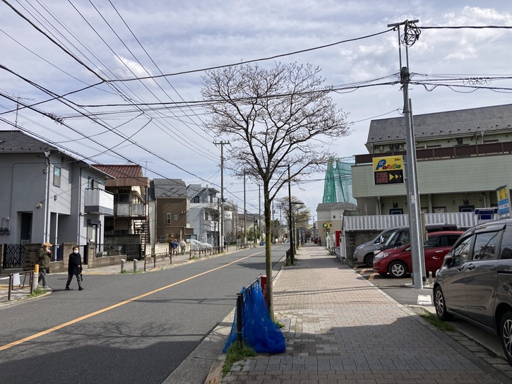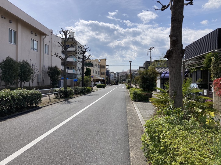 国道6号水戸街道を渡った先から、電柱のないスッキリとした青空の下に、道路の両側に植栽が施された美しい街並が現れます。